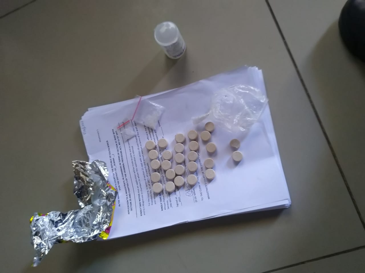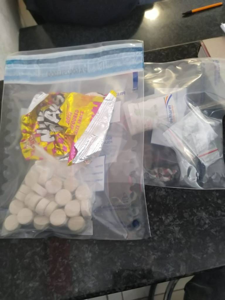 “Seven full mandrax tablets and two [quarter mandrax tablets] were found hidden inside a speaker. The rest of the drugs were stashed underneath a sink, where police found a bag containing 57 dagga bompies,” Nkohli said.